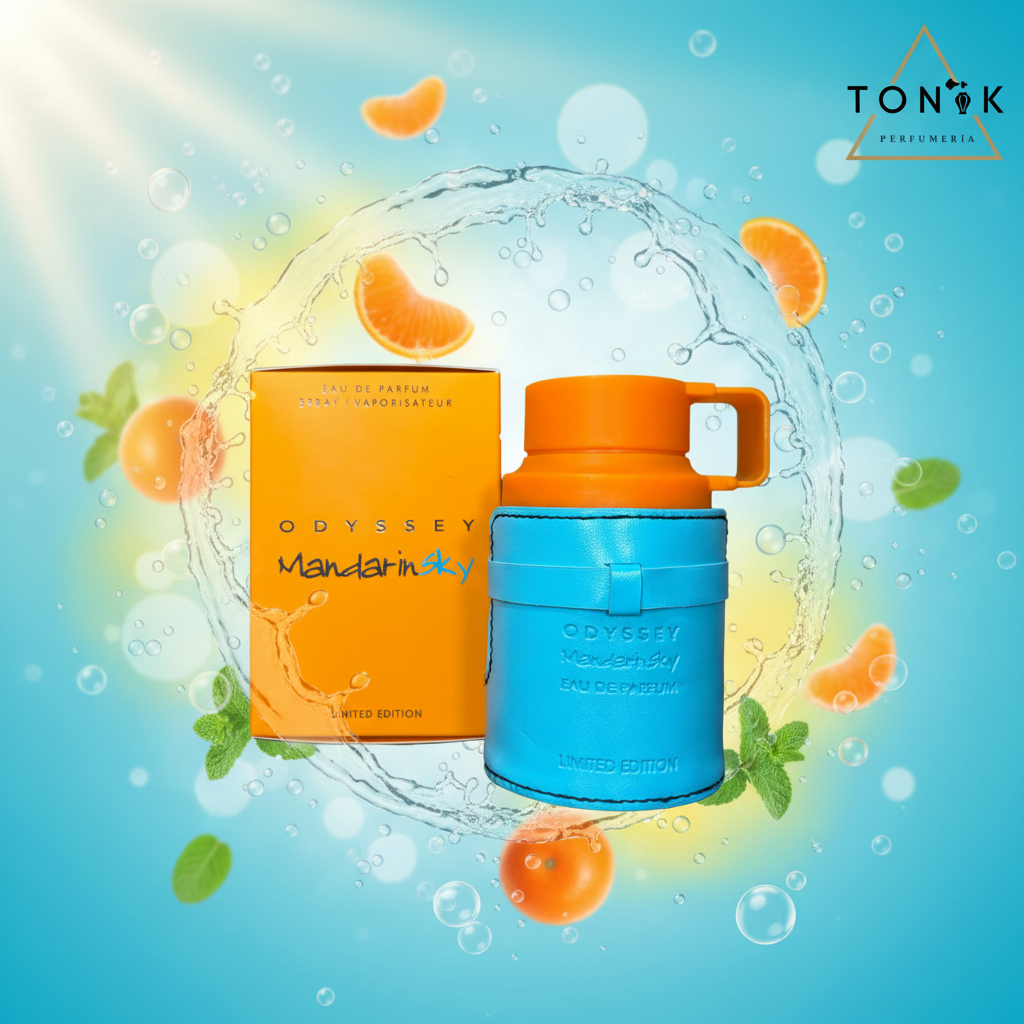 Odyssey Mandarin Sky de Armaf es una fragancia para hombre. Esta nueva fragancia se lanzó en 2023. Sus notas de salida son mandarina, naranja, azafrán y salvia; sus notas de corazón son caramelo, haba tonka y caléndula; y sus notas de fondo son ambroxan, cedro y vetiver.